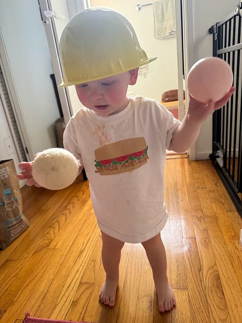 And Puddles? He’s 1.7 years old now; hence, a squirmy acrobat. You can’t put pajamas on such a creature. You would have better luck getting him to sit for a tattoo.