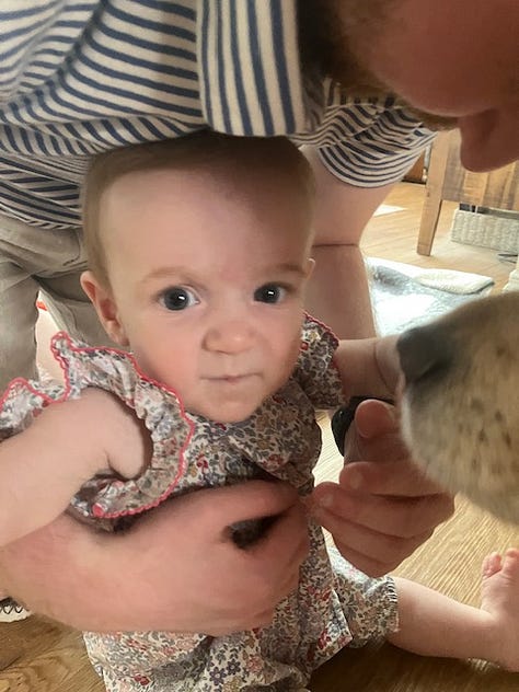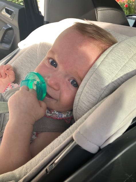 The other day, Rapunzel brought little Mookie by the house. When I went to retrieve her from the carseat, she’d just awakened from her nap. Her eyes glistened. Big jewels. The kind kings keep in their pockets to rub during meetings.