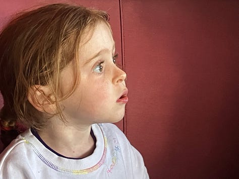 Speaking of rich internal lives, I realized the other day that children share their honest thoughts till around age 8, then some mechanism activates — some heart valve, some latch — that makes them overly cautious about their opinions, secrets and observations.