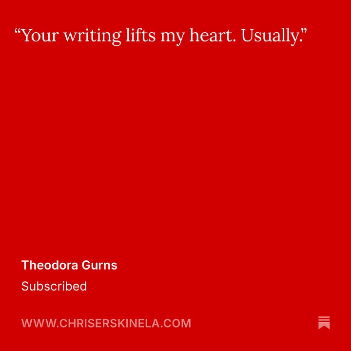 Finally, really enjoying the personal notes you’re sending with your subscriptions. Not sure I can respond to all of them. But I do read all of them and appreciate them very much. I’m glad we’re able to keep this thing going.