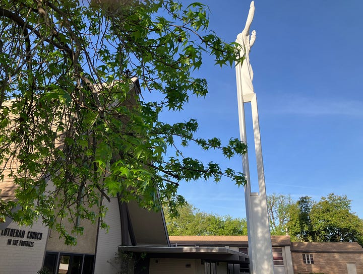 Every morning, White Fang and I stroll past the little Lutheran church up the hill. As we pass, we say a little prayer for you. And you and you and you ….