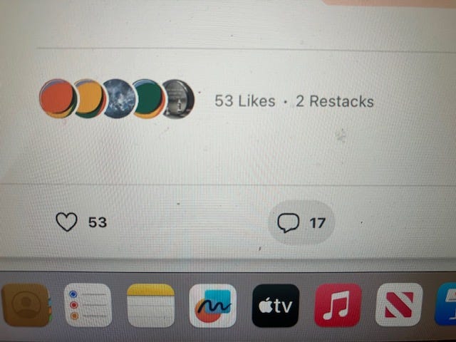 Having trouble finding comments in Substack? Try clicking on the thought-bubble icon at the bottom of the post (see below). Again, thanks for you patience and support.